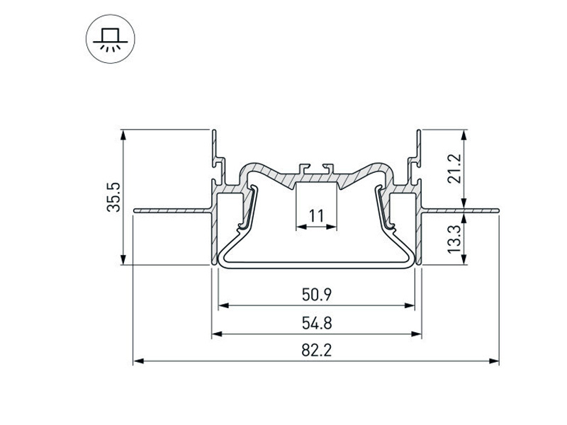 Габаритные размеры (L×W×H): 2000 x 82,2 x 35,5 мм. Ширина площадки для ленты 11 мм.