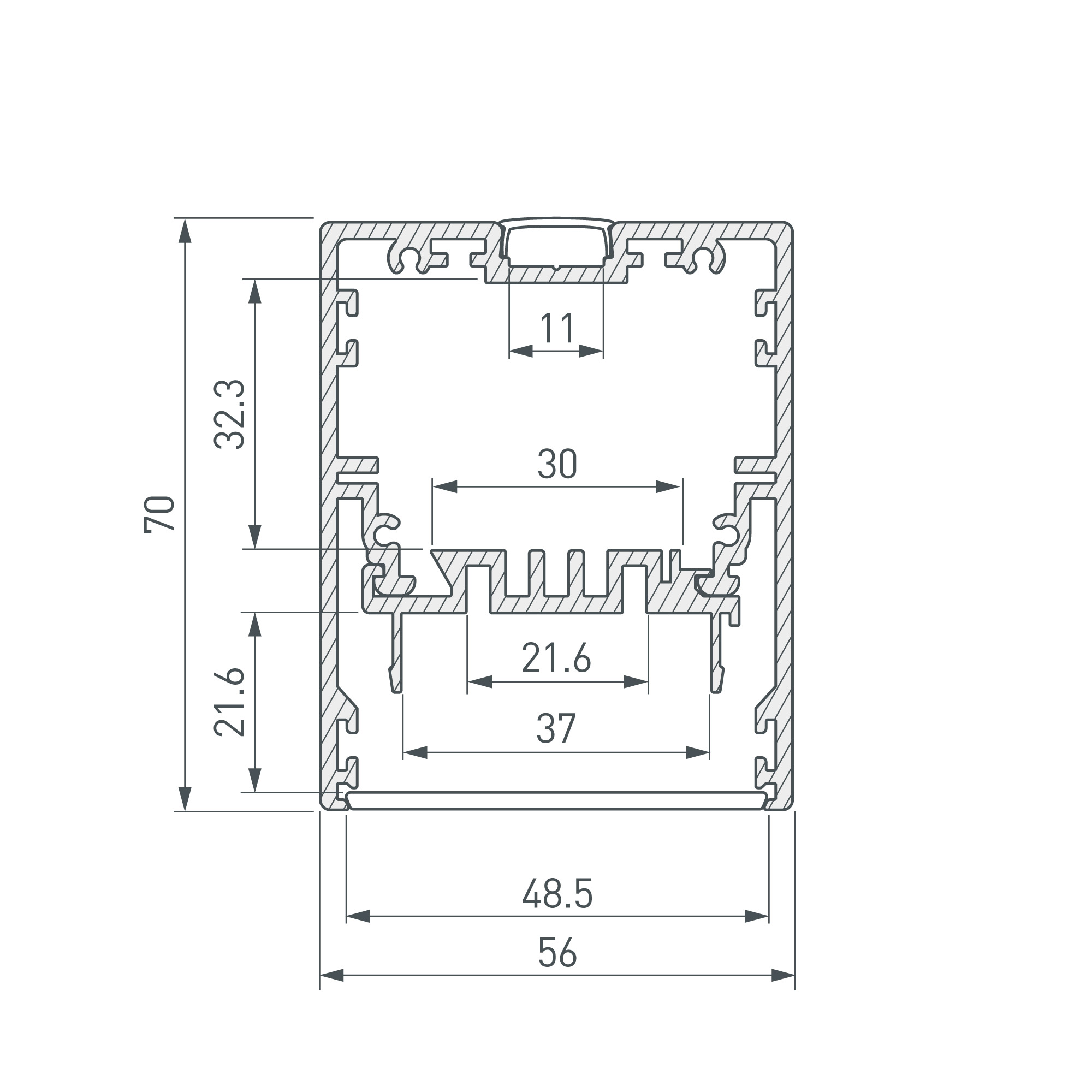 Габаритные размеры (L×W×H): 2000 x 56 x 70 мм.