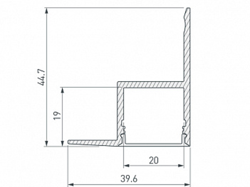 Габаритные размеры (L×W×H): 2000 x 44,7 x 39,6 мм. Ширина площадки для ленты 20 мм.