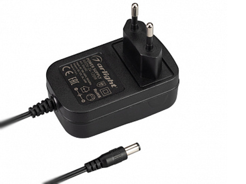 Мощность 24 Вт. Вход:100-240 VAC, длина кабеля 1.5 м, коннектор 5.5 x 2.1 x 10 мм.
